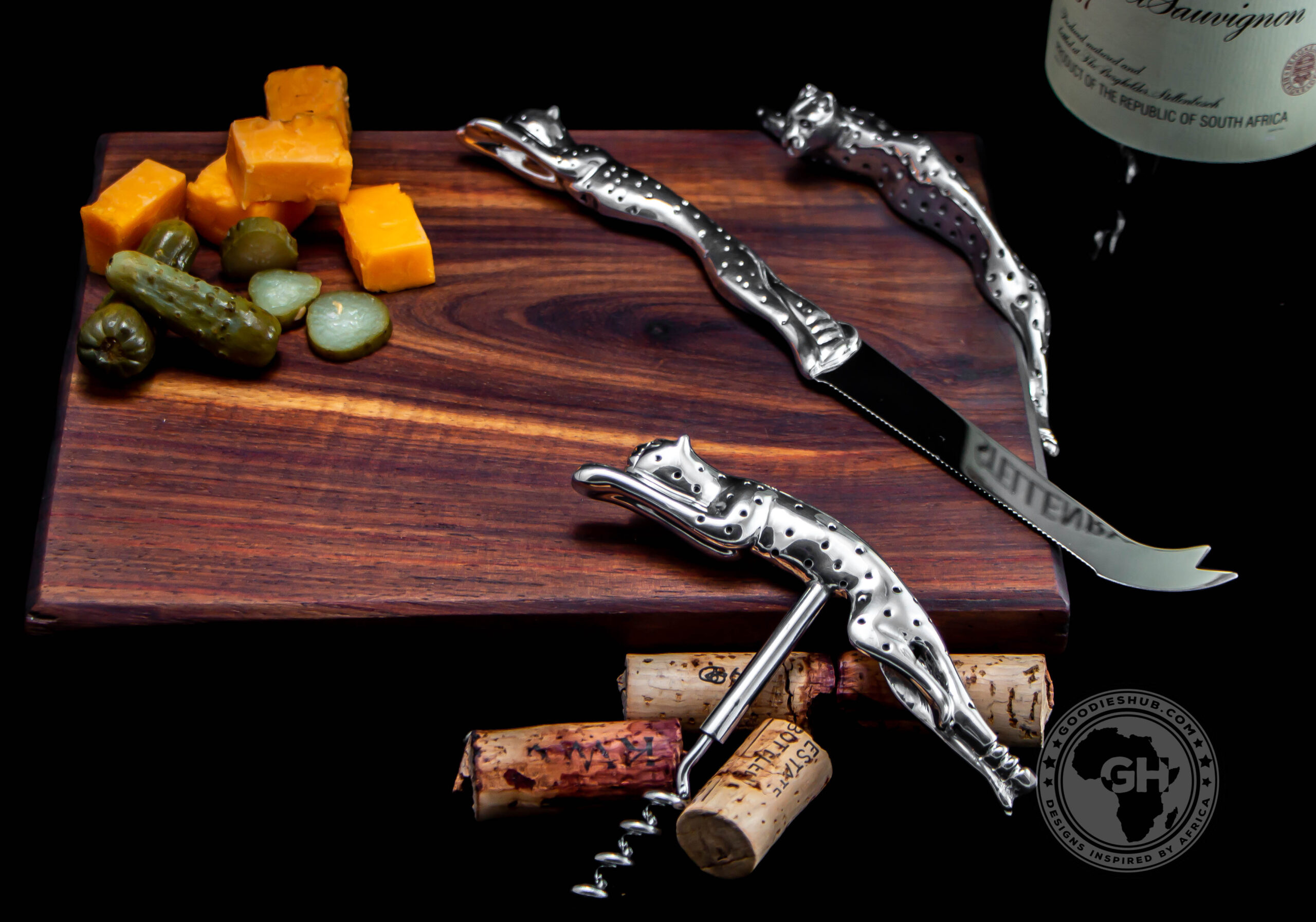 Uploaded image mix Cheese Board Small Cheese Knife large & Corkscrew Cheetah a.jpg